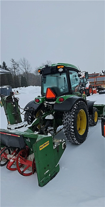 Tracteur John Deere 2022, vient avec une gratte Jules Roberge et un souffleur Agrimetal.